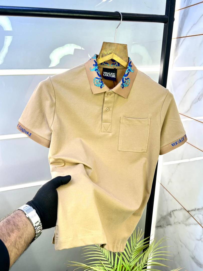Versace Beige Imported Collar Neck Premium Polo T-shirt F3047-BE